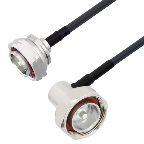 PolyPhaser CA240LL021-1M is a 1 meter 7/16 to 7/16 M/M Right Angle 240 Series Low Loss Cable Jumper is built using high quality components by skilled technicians to ensure a reliable product. The 7/16 Male and 7/16 Male Right Angle cable jumper connections are designed to industry standard interface dimensions to ensure superior performance. This product is in stock and available for same day shipping. The use of a right angle interface helps when attaching the cable assembly in tight spaces and can reduce strain on the cable/connector interface. This high-quality RF coaxial assembly is perfect in many RF Interconnect applications such as industrial / commercial, Wi-Fi, Land Mobile Radio (LMR), and many other applications. The CA240LL021-1M 7/16 to 7/16 cable assembly is the perfect companion to PolyPhaser line of RF surge protection devices particularly when used as an antenna jumper cable.