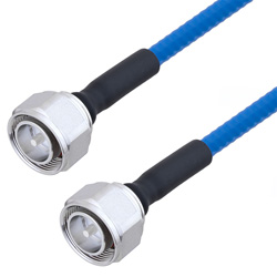 The quarter inch low PIM plenum rated coax used in these 4.3-18 to 4.3-18 assemblies is a .250 inch diameter copper corrugated coax with a blue FEP jacket. This cable's PTFE dielectric is low loss material with a phase velocity of 76% and offers excellent passive intermodulation (PIM) performance better than -160 dBc. The construction of the quarter inch copper corrugated jumper results in a minimum bend radius of 1.25 inches. The cable assembly's combination of 4.3-18 to 4.3-18 M/M and Times Microwave's SPP-250-LLPL low PIM plenum rated cable supports a maximum operation frequency of 5.8 GHz. Each cable assembly is installed with heat shrink booting on each end and a PIM label with the measured PIM level. You can find detailed performance specifications in the product datasheet. All PolyPhaser assemblies are tested and inspected prior to shipping.