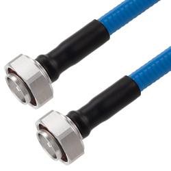The half inch low PIM plenum rated coax used in these 7/16 DIN to 7/16 DIN assemblies is a .500 inch diameter copper corrugated coax with a blue FEP jacket. This cable's PTFE dielectric is low loss material with a phase velocity of 76% and offers excellent passive intermodulation (PIM) performance better than -160 dBc. The construction of the half inch copper corrugated jumper results in a minimum bend radius of 1.25 inches. The cable assembly's combination of 7/16 DIN to 7/16 DIN M/M and Times Microwave's SPP-500-LLPL low PIM plenum rated cable supports a maximum operation frequency of 5.8 GHz. Each cable assembly is installed with heat shrink booting on each end and a PIM label with the measured PIM level. You can find detailed performance specifications in the product datasheet. All PolyPhaser assemblies are tested and inspected prior to shipping.