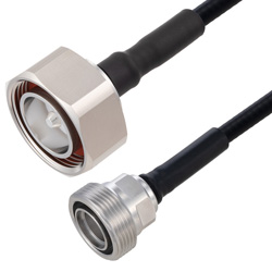 The quarter inch low PIM outdoor rated coax used in these 7/16 DIN to 7/16 DIN assemblies is a .250 inch diameter copper corrugated coax with a black PE jacket. This cable's foam PE dielectric is low loss material with a phase velocity of 83% and offers excellent passive intermodulation (PIM) performance better than -160 dBc. The construction of the quarter inch copper corrugated jumper results in a minimum bend radius of 1.25 inches. The cable assembly's combination of 7/16 DIN to 7/16 DIN M/F and Times Microwave's SPO-259 low PIM plenum rated cable supports a maximum operation frequency of 5.8 GHz. Each cable assembly is installed with heat shrink booting on each end and a PIM label with the measured PIM level. You can find detailed performance specifications in the product datasheet. All PolyPhaser assemblies are tested and inspected prior to shipping.