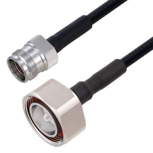The quarter inch low PIM outdoor rated coax used in these 4.3-12 to 7/16 DIN assemblies is a .250 inch diameter copper corrugated coax with a black PE jacket. This cable's foam PE dielectric is low loss material with a phase velocity of 83% and offers excellent passive intermodulation (PIM) performance better than -160 dBc. The construction of the quarter inch copper corrugated jumper results in a minimum bend radius of 1.25 inches. The cable assembly's combination of 4.3-12 to 7/16 DIN F/M and Times Microwave's SPO-252 low PIM plenum rated cable supports a maximum operation frequency of 5.8 GHz. Each cable assembly is installed with heat shrink booting on each end and a PIM label with the measured PIM level. You can find detailed performance specifications in the product datasheet. All PolyPhaser assemblies are tested and inspected prior to shipping.