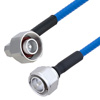 The quarter inch low PIM plenum rated coax used in these 4.1/9.5 Mini DIN to 4.3-16 assemblies is a .250 inch diameter copper corrugated coax with a blue FEP jacket. This cable's PTFE dielectric is low loss material with a phase velocity of 76% and offers excellent passive intermodulation (PIM) performance better than -160 dBc. The construction of the quarter inch copper corrugated jumper results in a minimum bend radius of 1.25 inches. The cable assembly's combination of 4.1/9.5 Mini DIN to 4.3-16 M Right Angle/M and Times Microwave's SPP-250-LLPL low PIM plenum rated cable supports a maximum operation frequency of 5.8 GHz. Each cable assembly is installed with heat shrink booting on each end and a PIM label with the measured PIM level. You can find detailed performance specifications in the product datasheet. All PolyPhaser assemblies are tested and inspected prior to shipping.