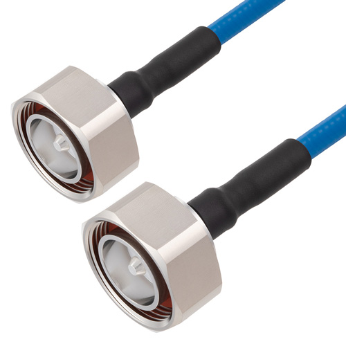 The quarter inch low PIM plenum rated coax used in these 7/16 DIN to 7/16 DIN assemblies is a .250 inch diameter copper corrugated coax with a blue FEP jacket. This cable's PTFE dielectric is low loss material with a phase velocity of 76% and offers excellent passive intermodulation (PIM) performance better than -160 dBc. The construction of the quarter inch copper corrugated jumper results in a minimum bend radius of 1.25 inches. The cable assembly's combination of 7/16 DIN to 7/16 DIN M/M and Times Microwave's SPP-250-LLPL low PIM plenum rated cable supports a maximum operation frequency of 5.8 GHz. Each cable assembly is installed with heat shrink booting on each end and a PIM label with the measured PIM level. You can find detailed performance specifications in the product datasheet. All PolyPhaser assemblies are tested and inspected prior to shipping.