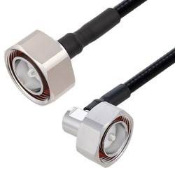 The quarter inch low PIM fire rated coax used in these 7/16 DIN to 7/16 DIN assemblies is a .250 inch diameter copper corrugated coax with a black FRPE jacket. This cable's foam PE dielectric is low loss material with a phase velocity of 83% and offers excellent passive intermodulation (PIM) performance better than -160 dBc. The construction of the quarter inch copper corrugated jumper results in a minimum bend radius of 1.25 inches. The cable assembly's combination of 7/16 DIN to 7/16 DIN M/M Right Angle and Times Microwave's SPF-253 low PIM plenum rated cable supports a maximum operation frequency of 5.8 GHz. Each cable assembly is installed with heat shrink booting on each end and a PIM label with the measured PIM level. You can find detailed performance specifications in the product datasheet. All PolyPhaser assemblies are tested and inspected prior to shipping.