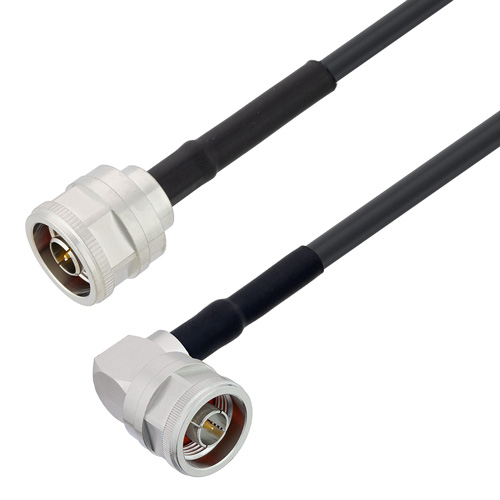For additional strength, these Type N Male to Type N Male Right Angle cable assemblies have polyolefin heat shrink strain relief boots on both ends of the RF Cable Assembly Jumpers. The heat shrink booting uses a double walled epoxy filled material to prolong the life of the assembly.