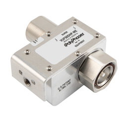 While this radio frequency lightning surge suppressor operates in a range of frequencies from 80MHz to 200MHz, it is supporting a power handling maximum of 1 kWatts.RF surge protector VUF50DHP-ME from PolyPhaser incorporates hybrid technology to provide protection for equipment at up to the max. power of 1kW.Our coax surge protection device for RF is manufactured with a 7/16 DIN connection in and a 7/16 DIN out.