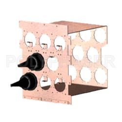 All inclusive modular 8 port copper coaxial entry panels that provide a single pointstructure for grounding multiple grounds. This product will accommodate cable sizes from 1/2" up to 3 1/8" in diameter and can be arranged side by side for increasing the number of entrance panels.