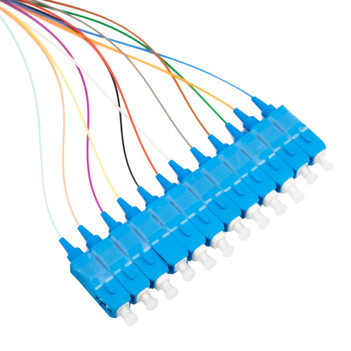 Fiber Optic Pigtails, Round Cable Fanout 12 x SC Simplex SMF, Blue, 12 Fiber, 3m