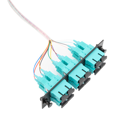 Fiber Optic Pigtails, w/ LGX-style Adapter Plate 6 x SC Simplex MMF OM3, Aqua, 6 Fiber, 3m