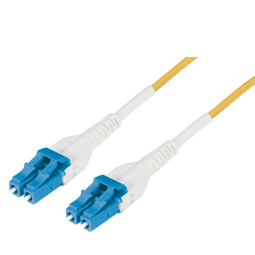 Fiber Optic Patch Cord Duplex Uniboot LC to LC Single Mode Fiber, OFNR,Yellow 3.0mm jacket, 5m