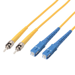 Fiber Optic Patch Cord Duplex ST to SC Single Mode Fiber, OFNR,Yellow 3.0mm jacket, 3m