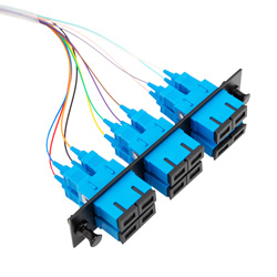 Fiber Optic Pigtails, w/ LGX-style Adapter Plate 6 x SC Duplex SMF, Blue, 12 Fiber, 3m