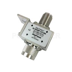 PolyPhaser coaxial RF surge protector (also known as lightning surge protector, lightning surge arrestor or suppressor) IS-NEMP-C2-MA is in-stock and will ship same-day as purchased. This radio frequency surge protector / lightning surge arrestor helps protect your equipment from electromagnetic pulse (EMP) or power surges that are commonly caused by lightning or other strong electrical changes. Our radio frequency coaxial surge protector product is commonly used for radio and antenna installations where part or all system equipment is outdoors to protect sensitive equipment and is designed to pass 125 MHz to 1 GHz while suppressing DC surge.