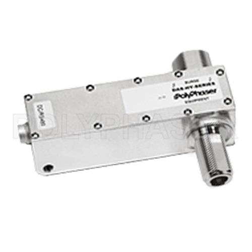 PolyPhaser coaxial RF surge protector (also known as lightning surge protector, lightning surge arrestor or suppressor) DAS-HY-NMNF-01S is in-stock and will ship same-day as purchased. This radio frequency surge protector / lightning surge arrestor helps protect your equipment from electromagnetic pulse (EMP) or power surges that are commonly caused by lightning or other strong electrical changes. Our radio frequency coaxial surge protector product is commonly used for radio and antenna installations where part or all system equipment is outdoors to protect sensitive equipment and is designed to pass 800 MHz to 2 GHz while suppressing DC surge.