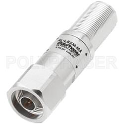 PolyPhaser coaxial RF surge protector (also known as lightning surge protector, lightning surge arrestor or suppressor) AL-LSXM-MA is in-stock and will ship same-day as purchased. This radio frequency surge protector / lightning surge arrestor helps protect your equipment from electromagnetic pulse (EMP) or power surges that are commonly caused by lightning or other strong electrical changes. Our radio frequency coaxial surge protector product is commonly used for radio and antenna installations where part or all system equipment is outdoors to protect sensitive equipment and is designed to pass 2 GHz to 6 GHz while suppressing DC surge.
