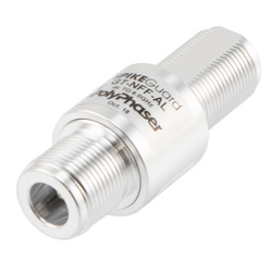 PolyPhaser coaxial RF surge protector (also known as lightning surge protector, lightning surge arrestor or suppressor) GT-NFF-AL25 is in-stock and will ship same-day as purchased. This radio frequency surge protector / lightning surge arrestor helps protect your equipment from electromagnetic pulse (EMP) or power surges that are commonly caused by lightning or other strong electrical changes. Our radio frequency coaxial surge protector product is commonly used for radio and antenna installations where part or all system equipment is outdoors to protect sensitive equipment and is designed to pass DC to 6 GHz while suppressing DC surge.