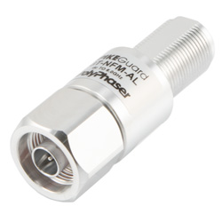 PolyPhaser coaxial RF surge protector (also known as lightning surge protector, lightning surge arrestor or suppressor) GT-NFM-AL25 is in-stock and will ship same-day as purchased. This radio frequency surge protector / lightning surge arrestor helps protect your equipment from electromagnetic pulse (EMP) or power surges that are commonly caused by lightning or other strong electrical changes. Our radio frequency coaxial surge protector product is commonly used for radio and antenna installations where part or all system equipment is outdoors to protect sensitive equipment and is designed to pass DC to 6 GHz while suppressing DC surge.