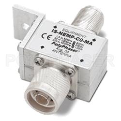 PolyPhaser coaxial RF surge protector (also known as lightning surge protector, lightning surge arrestor or suppressor) IS-NEMP-C0-MA is in-stock and will ship same-day as purchased. This radio frequency surge protector / lightning surge arrestor helps protect your equipment from electromagnetic pulse (EMP) or power surges that are commonly caused by lightning or other strong electrical changes. Our radio frequency coaxial surge protector product is commonly used for radio and antenna installations where part or all system equipment is outdoors to protect sensitive equipment and is designed to pass 1.5 MHz to 700 MHz while suppressing DC surge.
